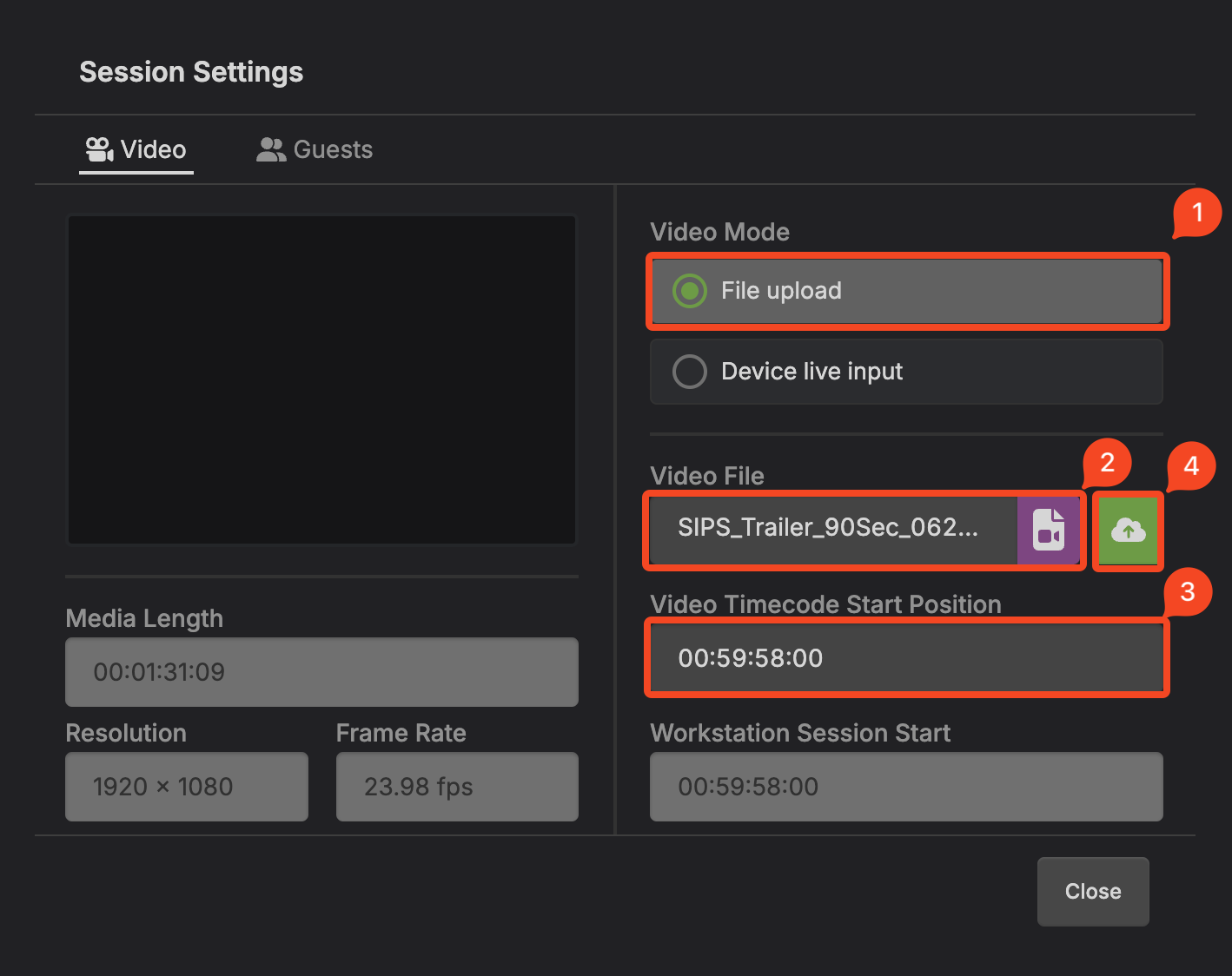 - Create and open a session, invite the performer and the guests you want to work with