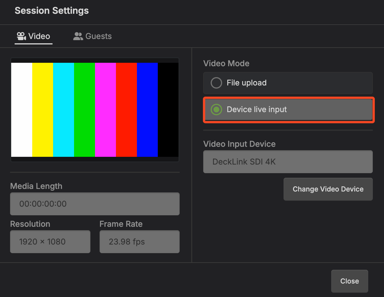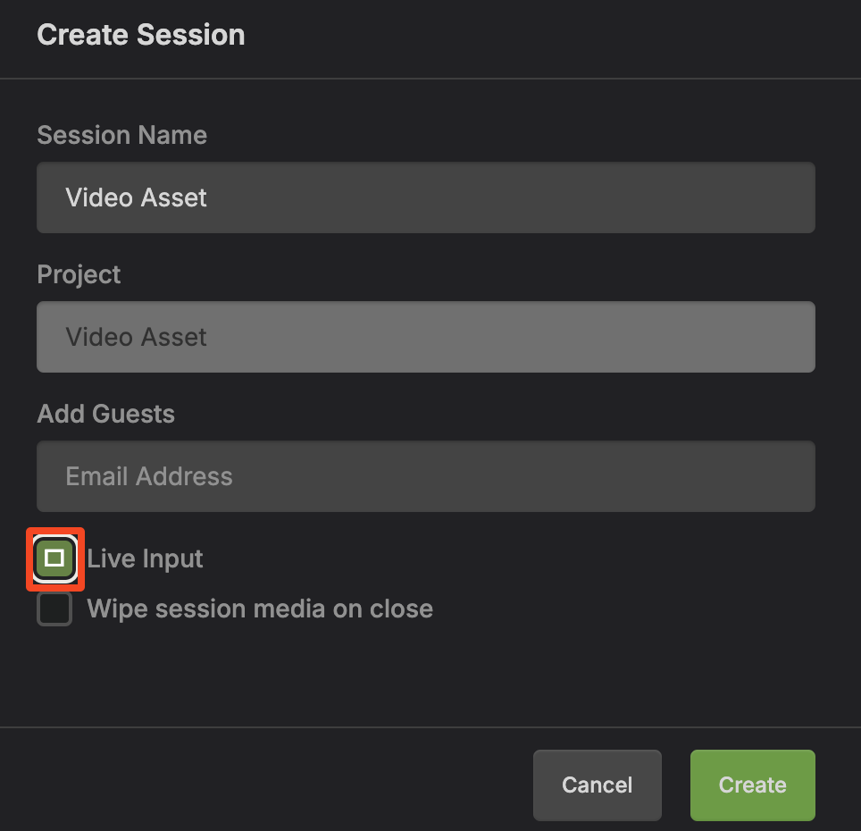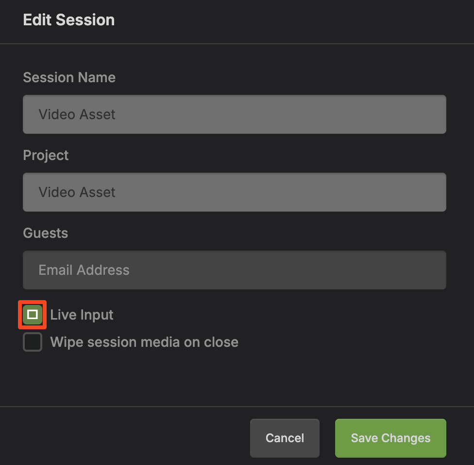 Create and launch your SyncDNA session. To enable Live Video input, select the checkbox when creating the session as described in Basic Usage, or enable it from within a session using the Session Settings.